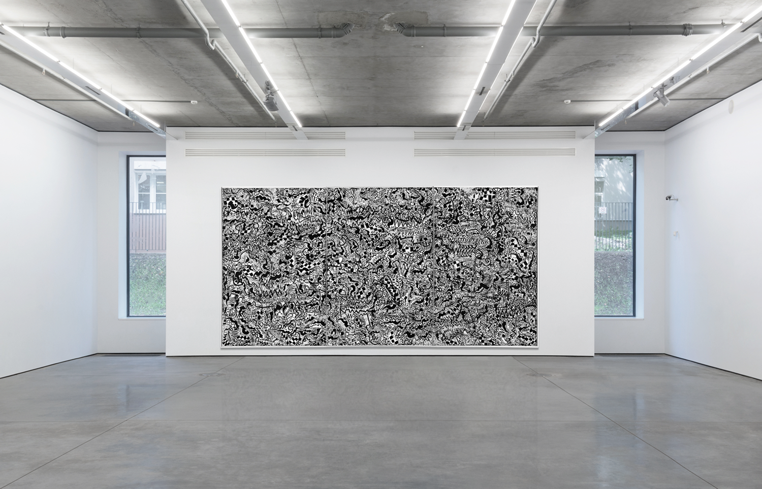The first encounter with Evgeny Chubarov's monumental paintings acquaints us with a phenomenon of symphonic work. The technique of applying paint with a squeegee is observed both in black-and-white and color paintings. Colorful shapes, in red, green, yellow, black, or white paint, are applied to the lower thin layers of black brushstrokes, in such a way that they resemble handkerchiefs waving in the wind, although that is not what is depicted. The color paintings are characterized by a lightness that differs them from most of the black-and-white ones.